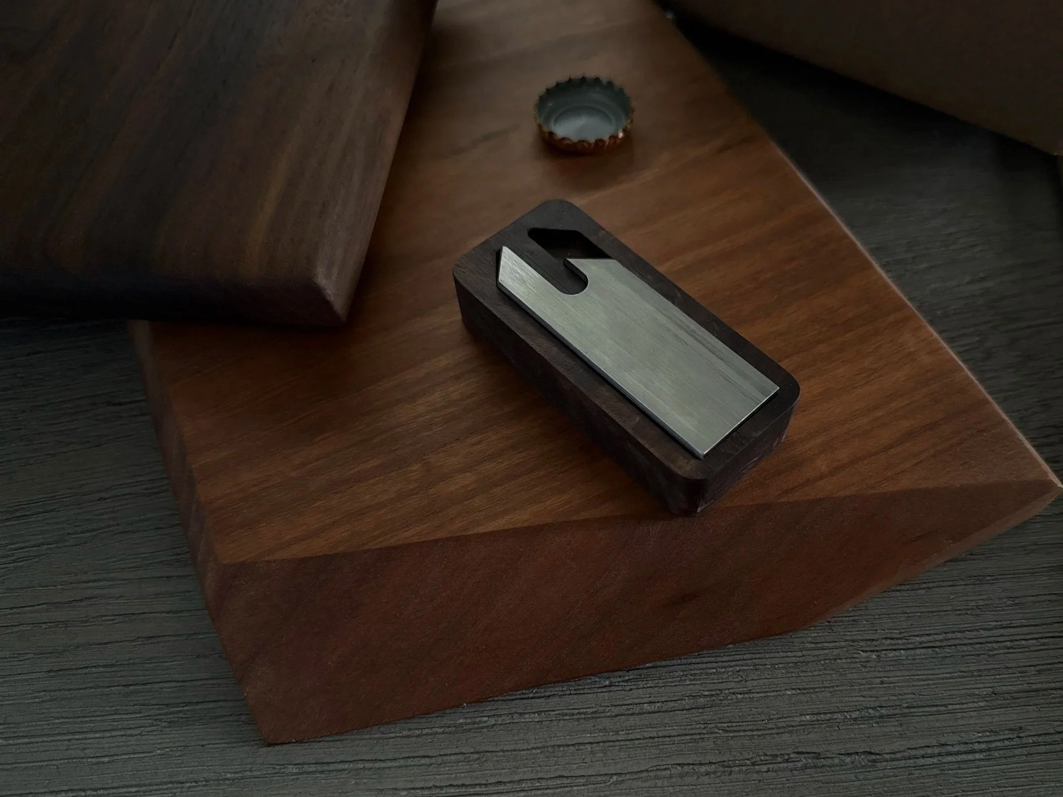 Each opener comes with a beautifully crafted walnut base station for elegant desktop or kitchen display, and a full-grain leather pouch for secure storage and travel. Whether at home or on the go, this set blends timeless design with purposeful utility — perfect for modern living, thoughtful gifting, or your own daily ritual.