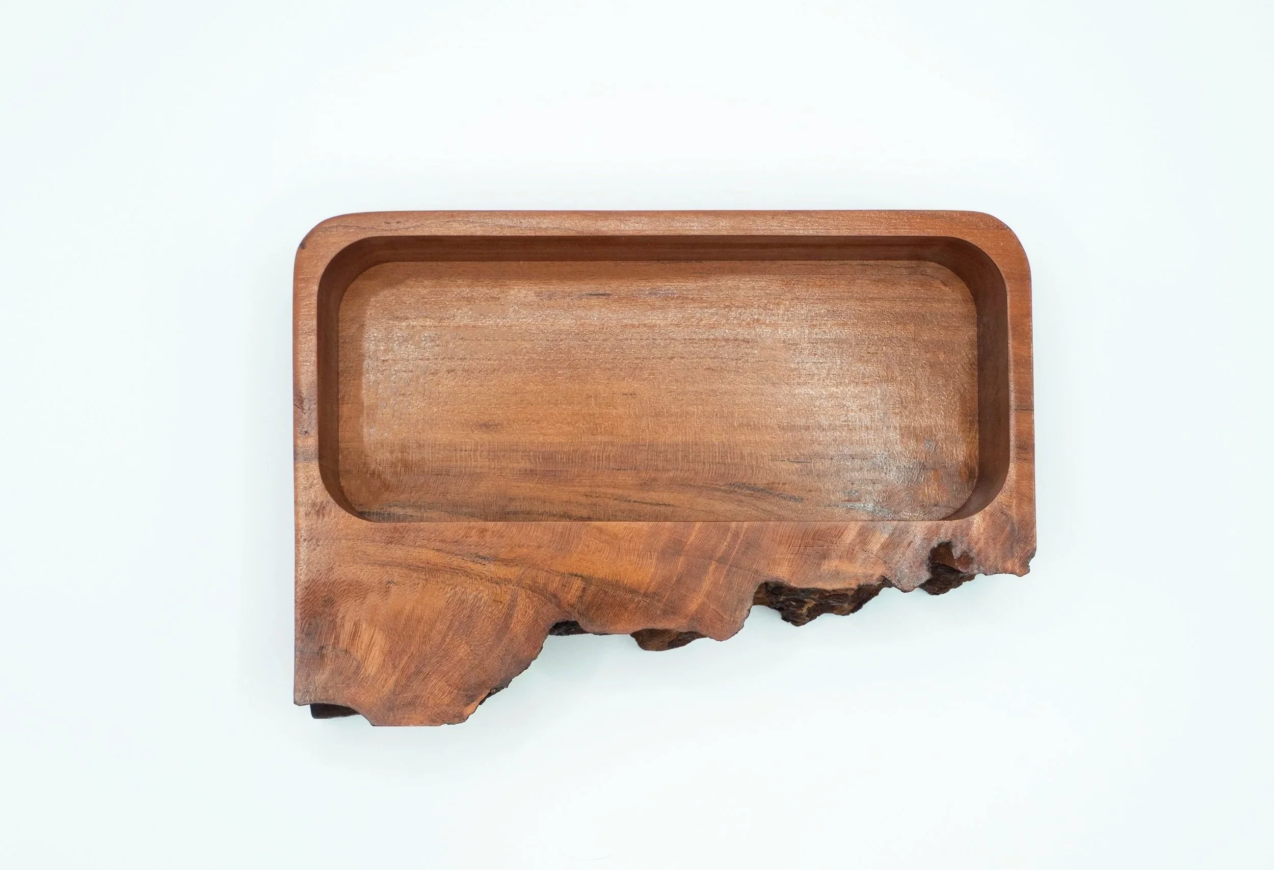 Valet tray carved from solid cherry. CNC machining establishes the form with precision, while a natural live edge preserves the character of the original slab. Designed as a functional object that sits comfortably between utility and sculpture, this piece reflects our ongoing exploration of material, process.
